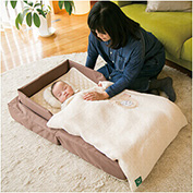 コンパクトベッドは、お布団、まくら、ベビーベッドを全て兼ね備えた布製のベビー寝具。