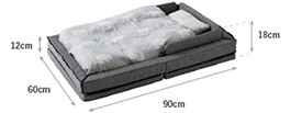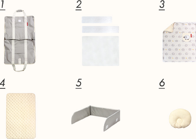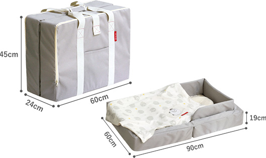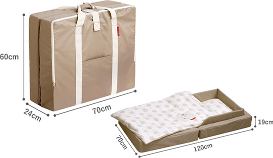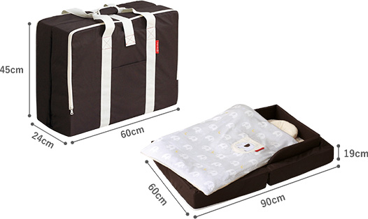 ミニベビーベッドに収まるサイズ(60×90cm)。コンパクトで持ち運びやすく、寝室からリビングの移動など毎日のお世話にもストレスがありません。限られた住空間でも利便性の高いコンパクトベッドです。