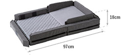 可変することで実用性が増したコンパクトベッド。オプション品の「ジョイントマットレス」を利用すれば、成長に合わせて自由自在に大きさを変えることができます。 プレイマットや、リビングのラグなどにもご利用いただけます。