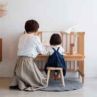 ファルスカのクリエイティブコットは「机」としての機能を持たせることで、ベビーベッド、サークル、そして学習机とお子さまの成長に合わせて永くご使用いただける道具として生み出されました。お子さまがお家にやってきたその日から、思い出と記憶を未来に残すことができるファルスカの想いが十分に注ぎ込まれた本格シリーズです。