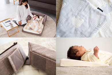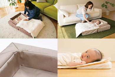 添い寝からお座りまでをサポートする赤ちゃんの特等席。カタチを変えながら「お寝んね」「お座り」「お食事...