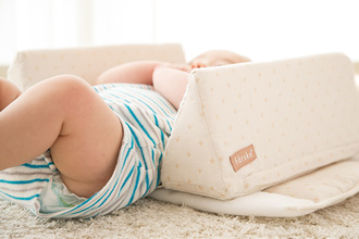 高さ13cmの三角クッションが、大人の寝返りから赤ちゃんを守る役割を担います。