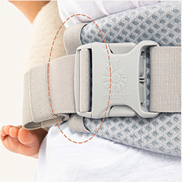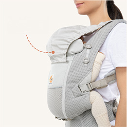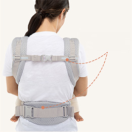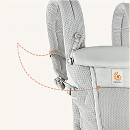 クッション入りの肩ストラップと、幅広の腰サポートが付いたウエストベルトで、赤ちゃんの体重をバランス良く分散する人間工学に基づいた設計。