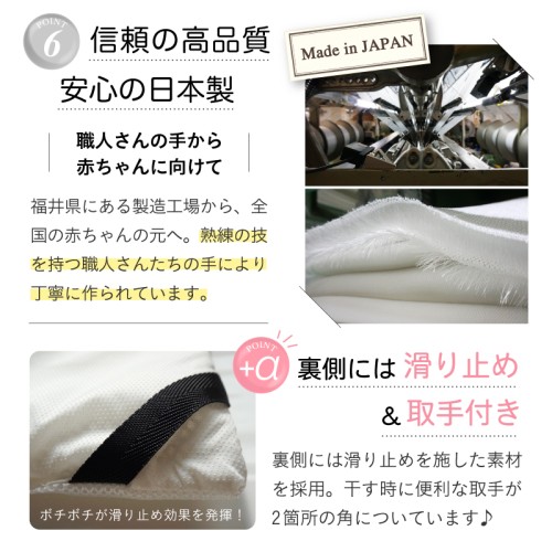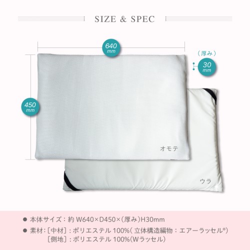 | 素材 | 〔中材〕ポリエステル100%(立体構造編物:エアーラッセル)、〔側地〕ポリエステル100%(Wラッセル) |
