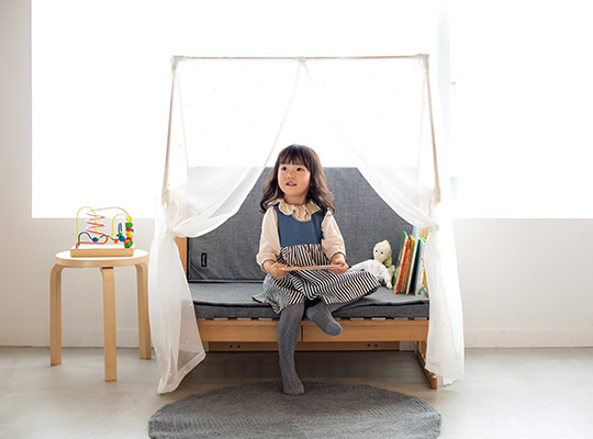 生まれた頃は寝具として、お子さまがお絵描きなどを楽しめる頃にはテーブルとしてお使いいただけます。