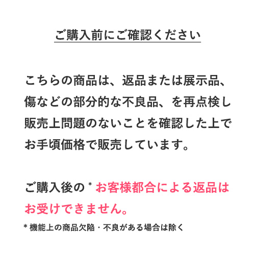 | 商品仕様について | 本製品は傷や汚れのある「アウトレット品」となります。 |