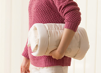 くるっと丸ればコンパクトに。 里帰り出産や帰省、旅行に持ち運びしやすく、おうちでのおねんねと同じように安心して添い寝ができます。