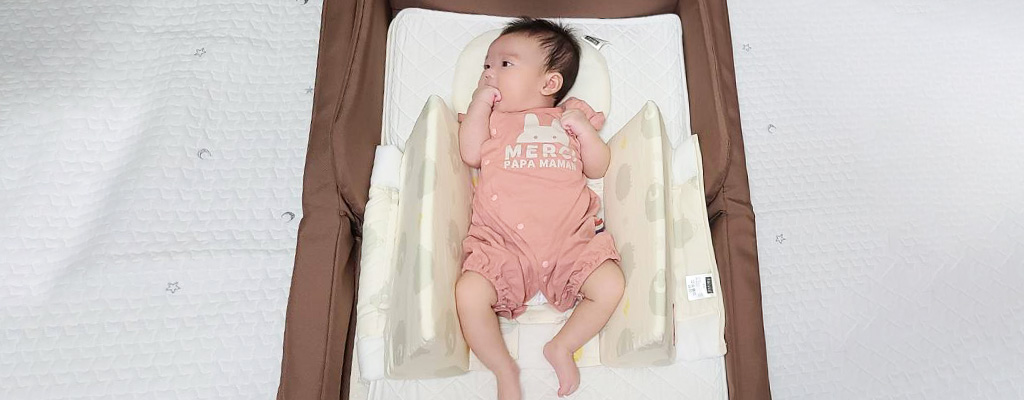 大きな三角クッションがお布団の被さりや、不意なうつ伏せ寝、ママパパの寝返りから赤ちゃんを守ります。生まれたばかりの赤ちゃんとの添い寝も安心です。