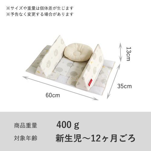 寝返り防止、ベッドガード、実家用のおねんねスペース、オムツ替えなど、様々なシーンで活躍するママパパサポートアイテムのひとつです。