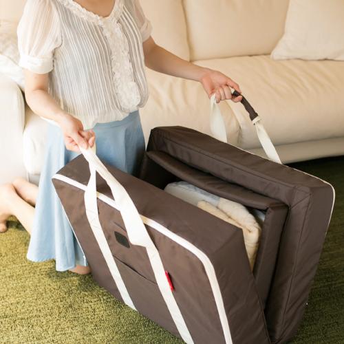 コンパクトベッドならお布団はそのまま、折りたたむだけで収納可能です。二人目、三人目のお子さまが生まれるまでの保管にもスペースをとりません。