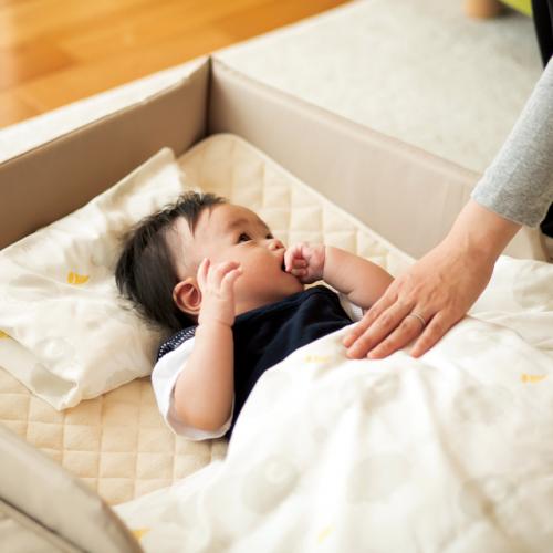 赤ちゃんのおねんねスペースは1つではありません。日中のリビングなどママの目の届く場所でおねんねスペースを用意してあげることができます。