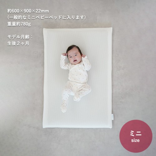 | [商品サイズ]ミニベビーマットレス(60×90cm) | 約60X90(±1cm)、厚み約3cm[ミニベビーベッド(内寸 60X90cm)対応]  |