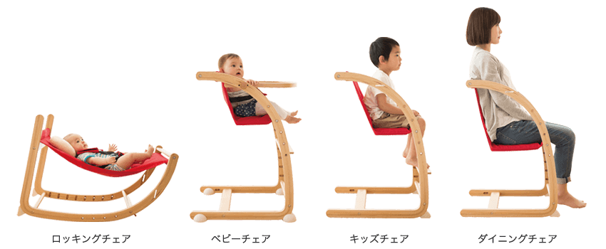 ベビーと一緒に形を変化させながら成長。生まれたその日から、 大人になっても座れる椅子。
