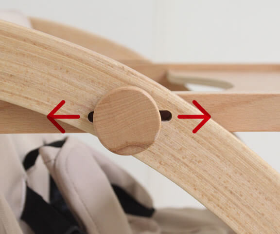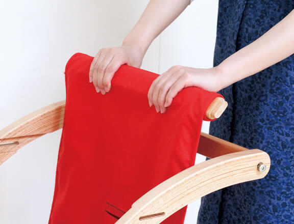 組み替え時の座面調整はシートを巻いて長さを調節。フレームへの取付位置を変えるだけで、体型に合わせた最適な姿勢で座ることができます。