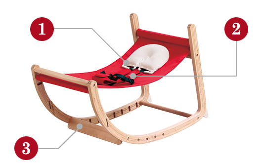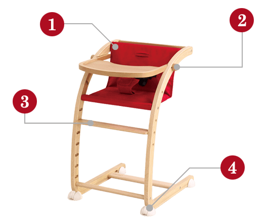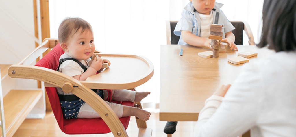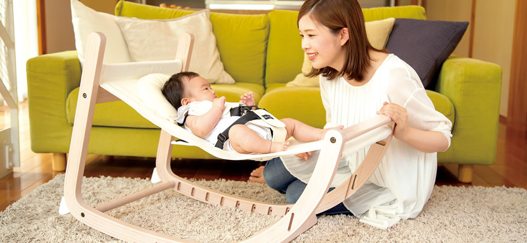 ベビーの成長に合わせて新生児期はロッキングチェア、乳児期はハイチェア、その後はダイニングチェアとしてスタイルを変化させながら長く愛用していただける機能&デザイン性を備えた本物の椅子です。