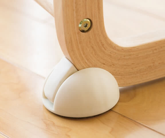 転倒防止キャップを取付けることで、ベビーが動作をした際に誤って椅子が倒れるのを防いでくれます。