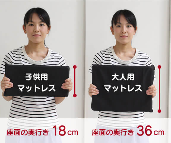 旧スクロールチェアでは1点だった座面用マットを大小2種類用意しました。子どもから大人まで背丈にあったマットを使用することで、よりリラックスできる座り心地となりました。