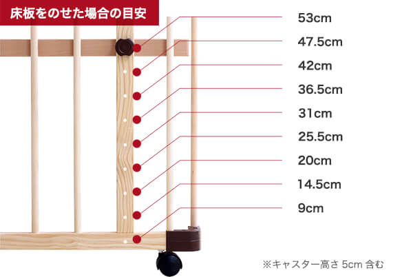 ベビーベッドとしての役目を終えたら、床板を取り外すことでベビーサークルとしてお使いいただけます。
