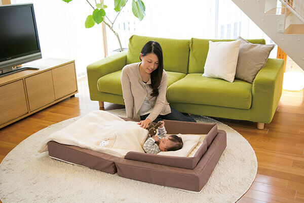 コンパクトベッドと組み合わせることで育児スペースを広げてくれます。