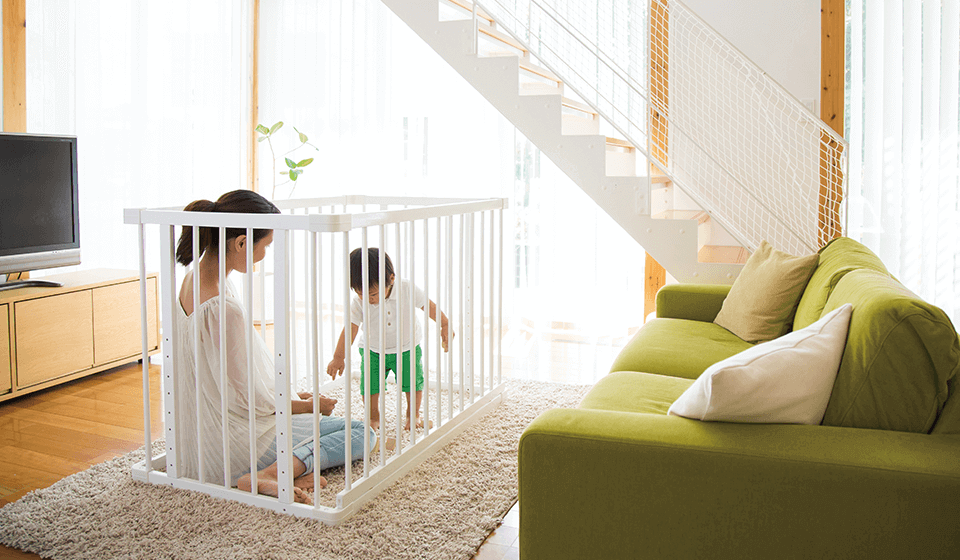 そんな時にベビーサークルとしてお使いいただくことで、見通しの良い格子越しに赤ちゃんの様子を確認しながら安心して家事仕事を行えます。