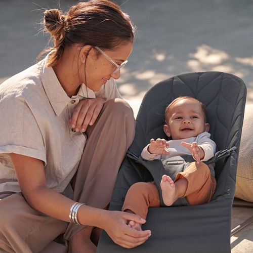 バウンサー Bliss(ブリス)は、赤ちゃんの繊細な肌にふんわりと優しい感触を提供し、パパママに代わってお子様をあやしてくれるバウンサーです。 首すわり前の赤ちゃんから使用でき、ゆらゆらと優しく揺れて赤ちゃんをあやします。慣れてくるとお子様がブランコのように自分で揺らすことができ、楽しく一人でご機嫌に遊べます。 3段階にリクライニングするので、首すわり前はフラットに、成長したら角度をつけて調整して使用できます。