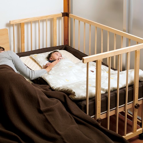 夜はそのままベッドサイドベッドに載せれるので、添い寝や夜中のおむつ替えも楽々です。