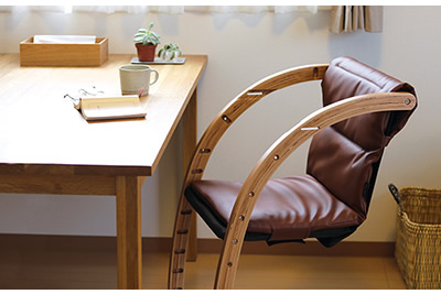 ファルスカ スクロールチェアPlusのPUレザークッションは、「座面が布だからお手入れが大変そう」という、お客様の不安の声を解決するためにデザインされました。お手入れはサッと拭き取るだけでOKです。座面部は芯材が2層構造(ポリエステル綿+ウレタンフォーム)でより快適な座り心地を実現しました。合成皮革の中でも通気性や柔軟性に優れた、より本革に近い質感のPUレザーを使用しているので、革張りの椅子のような上質な佇まいになります。 ※別売りのトレイカバーとの併用で、お食事タイムがより快適に。※