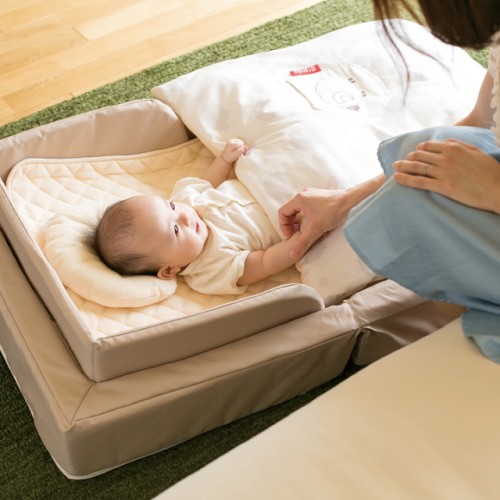 コンパクトに畳めて、いつも寝ているお寝んねスペースをどこへでも持ち運べるコンパクトベッド。 傾斜クッションが快適な眠りを誘い、ベビーの吐き戻しにも効果が。また高反発マットレスがベビーの未発達な背骨の健やかな成長を促します。 こちらのセットは洗い替え用もセットになっているので、このセットで赤ちゃんのおねんねスペースが完成します。
