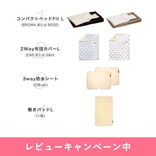 | セット内容(計4点) | ・コンパクトベッドフィットL ブラウン/ベージュ ・防水シート ・敷きパッドL ・2way布団カバーL エレアファントバナナ/シープホルン |