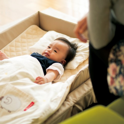 コンパクトに畳めて、いつも寝ているお寝んねスペースをどこへでも持ち運べるコンパクトベッド。こちらのタイプは3歳頃までご使用いただけます。 傾斜クッションが快適な眠りを誘い、ベビーの吐き戻しにも効果が。また高反発マットレスがベビーの未発達な背骨の健やかな成長を促します。 こちらのセットは洗い替え用もセットになっているので、このセットで赤ちゃんのおねんねスペースが完成します。