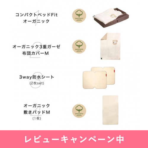 | セット内容(計4点) | ・コンパクトベッドフィット オーガニック ・防水シート ・敷きパッドオーガニック(ガーゼ) ・2wayオーガニック3重ガーゼ布団カバー |