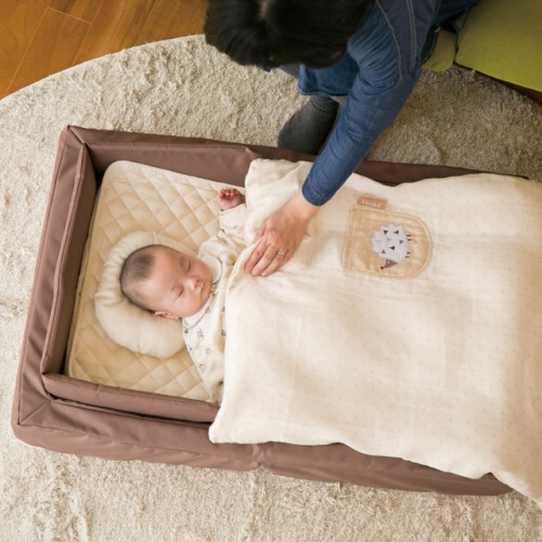 コンパクトに畳めて、いつも寝ているお寝んねスペースをどこへでも持ち運べるコンパクトベッドのオーガニックタイプ。 ガーゼ使用の掛け布団や敷きパッドはふんわりな柔らかな手触りの仕上がり。 傾斜クッションが快適な眠りを誘い、ベビーの吐き戻しにも効果が。また高反発マットレスがベビーの未発達な背骨の健やかな成長を促します。 こちらのセットは洗い替え用もセットになっているので、このセットで赤ちゃんのおねんねスペースが完成します。