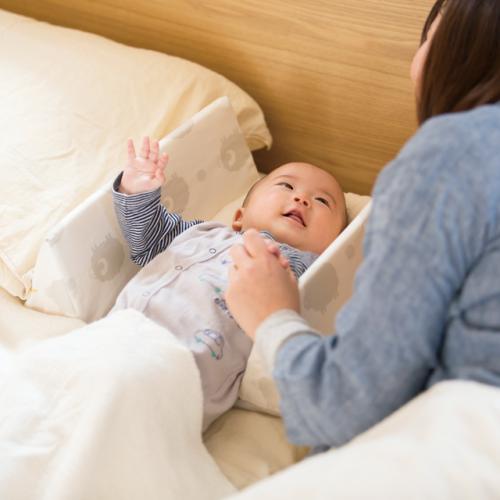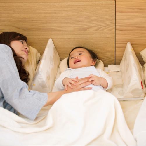 3way防水シート1枚付きの、持ち運びにも便利な添い寝セットです。成長に合わせてクッションの幅を調節できるため、生まれてすぐから12ヶ月頃まで長くご使用いただけます。ベビーとママ、パパとの境界を作り、安心・安全な添い寝をサポートします。