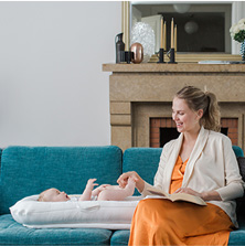 リビングでのおねんねやスキンシップに。フローリングの上に置いてもマットレスが寝心地を保ちます。