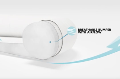 ドッカトットは、赤ちゃんがお腹の中にいた頃のように、小さく囲いのある環境に安心感を抱くと考え、 バンパーで包み込むようにデザインされたベビーマットレスです。