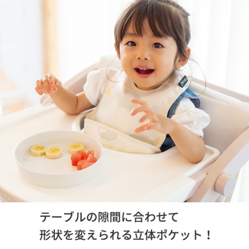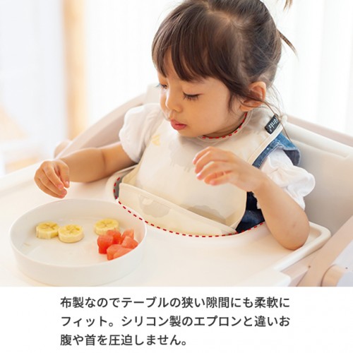 従来のシリコン製エプロンと違い、テーブルの隙間への突っかかりがありません!