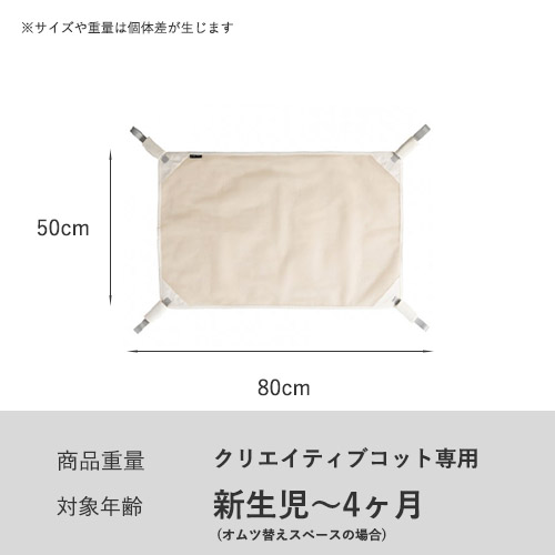 | ※クリエイティブコットシリーズ以外への利用 | クリエイティブコットシリーズ以外のベビーベッドへの利用は推奨しておりませんので予めご注意ください。 |