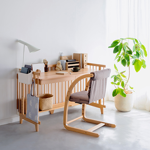 クリエイティブコットをデスクで使う時に便利なナチュラルカラーの収納ボード