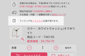 ラッピング対応可否の確認方法