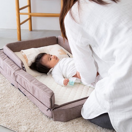 「お家の中はどこでもベビーベッド」がコンセプトの「コンパクトベッドFree」をグレードアップするセットができました。 洗い替え用の「綿パイル敷きパッド」や、どうしても布団を剥いでしまう赤ちゃんにぴったりな「スリーパー」、汚れ防止の「防水シート」がセットになっているので快適なおねんねをサポートします。 ベビーベッドを置くスペースにお悩みの方、リビングでお世話したい方にオススメのセットです。