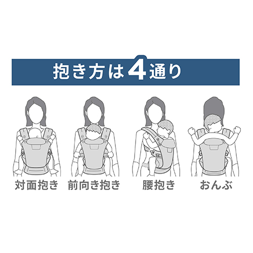 | 対象年齢 | 生後0ヵ月(体重3.2kg、身長50.8cm)から 体重20.4kgまで ※前向き抱きのみ:体重13kgまで |