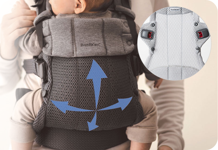 赤ちゃんを覆う面は全てメッシュ構成なので、速乾性と快適性を探究。