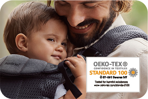 ベビービョルンで使用する生地はエコテックス スタンダード100 クラス1に準拠しています。