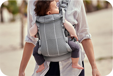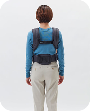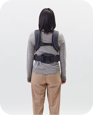 べビービョルンの抱っこ紐は、必ず片方の手で赤ちゃんを支えて安全に着脱できる構造です。