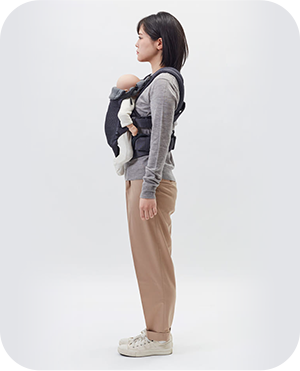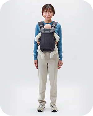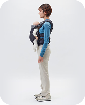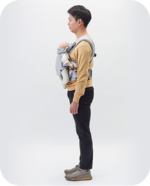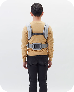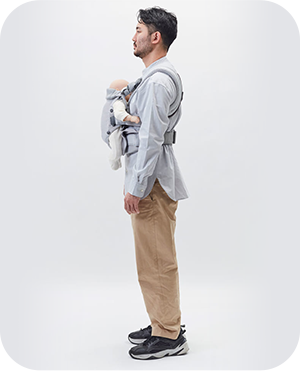 パパ・ママ・赤ちゃんの負担を軽減して、長時間ストレスなく抱っこができる優しい設計です。