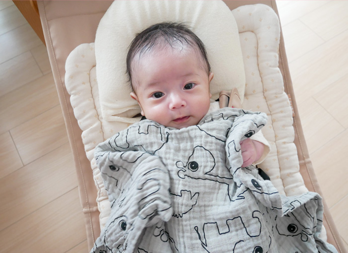 薄くて大きいサイズのものはくるっと巻いて授乳ケープにしたり、逆に厚手のものはリビングに敷いても◎
