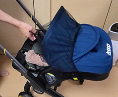 1歳のお宮参りで着物を着た際、手荷物を少なくする為スナップバッグを活用。doonaに取り付けることができるので邪魔にならず水筒、オムツ、貴重品、タオルと全て入れることができました!長時間ベビーカーとして使用する時は欠かさず使ってます!