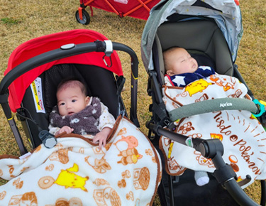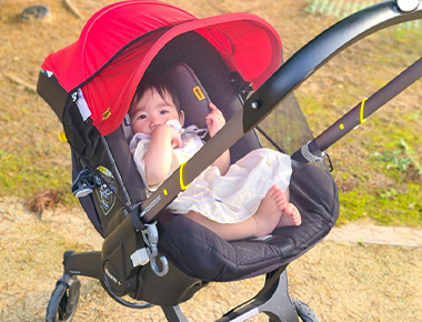 初宮参りに行った際、チャイルドシートに乗ったまま娘が寝てしまいましたが、起こすことなくベビーカーに変形させ、グズることなく祈願することができました。その後のお食事会では料亭にバウンサーとして持ち込み、ぐっすり眠ってくれていました!