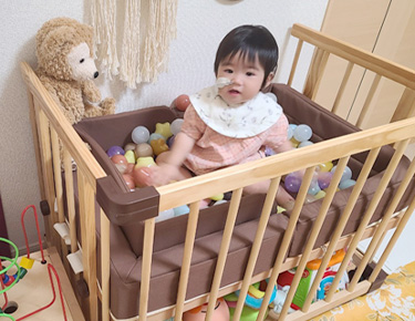 ベッドとして使用することがなくなったので、ベンチとして使用しています。つかまり立ちをしたり握ったりして遊んでます!座る部分に敷くものがなく大判のタオルケットで対応しています。サークルとして使ったら大きな声で「あーー!!」と叫び出せと訴えられました(笑)