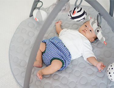 寝返りをするようになって動きが大きくなってきているので、少しおとなしく遊んでいてほしいときなどに寝かせています。